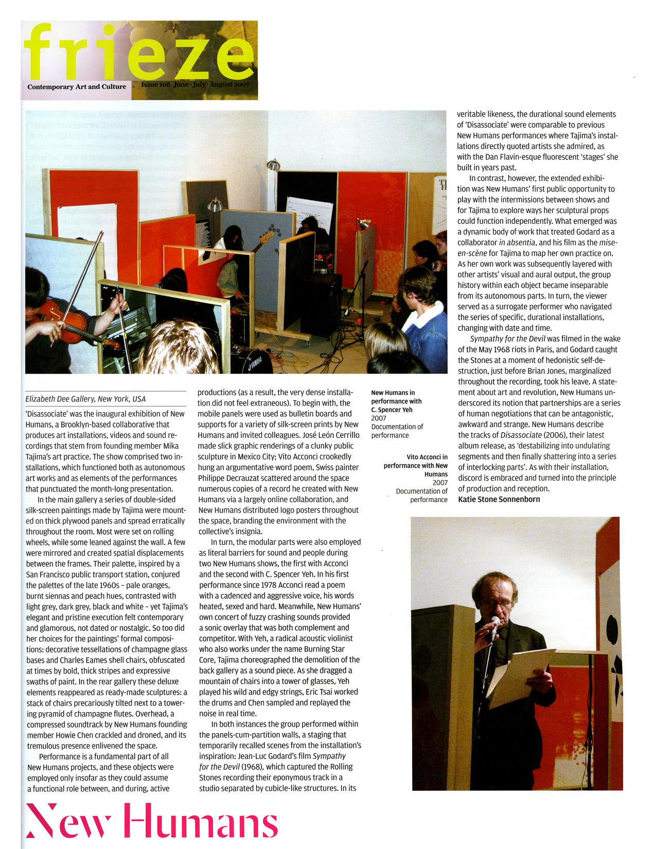 - 9/13: New Humans and Alvin Aronson collaboration in Mika Tajima: Total Body Conditioning installation at Art In General, New York.